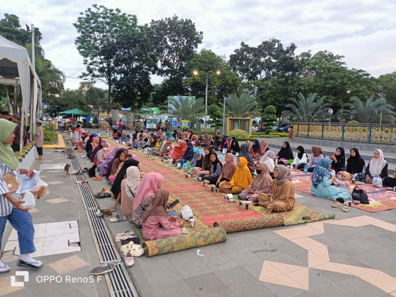 Sekitar 300 orang duduk beralaskan ambal yang dibentangkan pihak badan kemakmuran masjid. Anak anak, orang tua, ASN Pemkab Deli Serdang berbaur sambil mendengarkan tausiah yang disampaikkan Al Ustadz Dr H Sarmadan Nur Siregar MPd, sambil menunggu waktu berbuka.