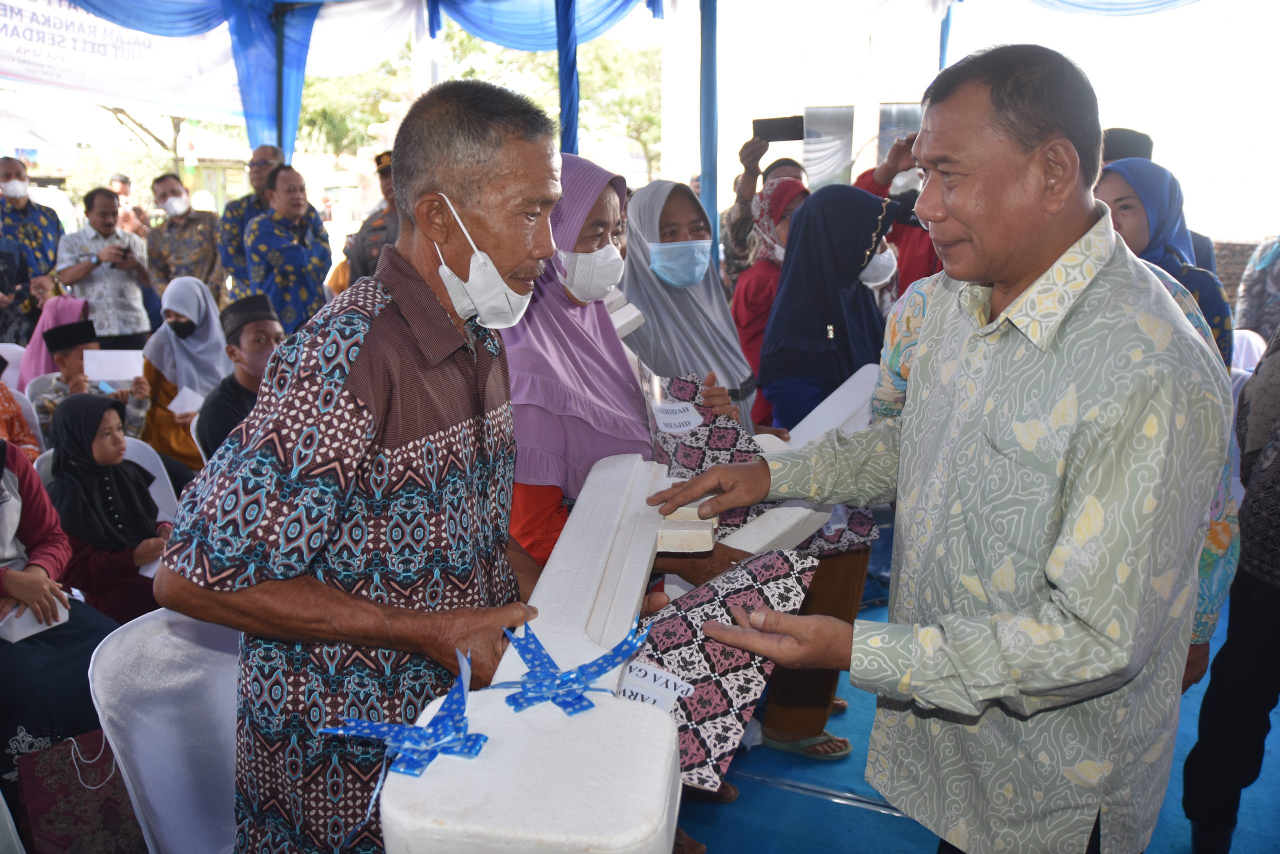Bupati Deli Serdang, H Ashari Tambunan menghadiri penyerahan 18 kunci bedah rumah siap huni dan pemberian santunan sembilan bahan pokok (sembako) di Kantor Desa Sena, Kecamatan Batang Kuis, Kamis (30/6/2022).