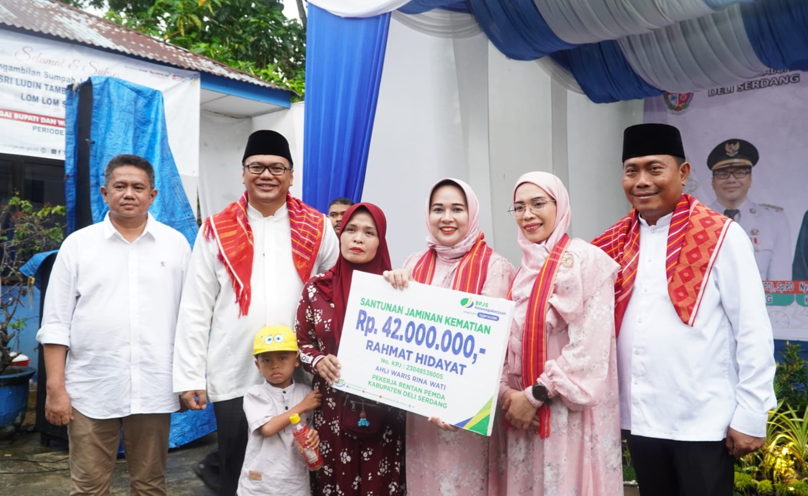 Kemudian, menyerahkan 4.950 kartu Penerima Bantuan Iuran (PBI) Jaminan Kesehatan, Badan Penyelenggara Jaminan Sosial (BPJS) Ketenagakerjaan, penerima manfaat jaminan kematian, satunan kepada anak yatim dari Kecamatan Namorambe, Deli Tua dan Biru Biru, akta kelahiran, akta perkawinan, kartu tanpa penduduk (KTP), bola dan net voly, tali asih bilal mayit, bantuan material rumah ibadah, Nomor Induk Berusaha (NIB), dan benih ikan mas kepada warga.