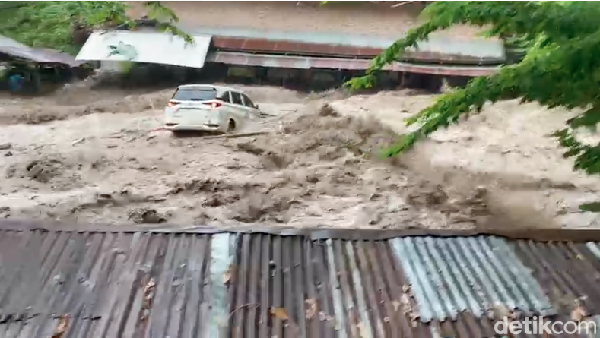 Salah satunya video yang diunggah oleh pria bernama Haris di akun Instagramnya @haris_asbari05. Dalam video tersebut, terlihat banjir bandang dengan warna air yang sangat keruh menerjang wilayah di sekitarnya.