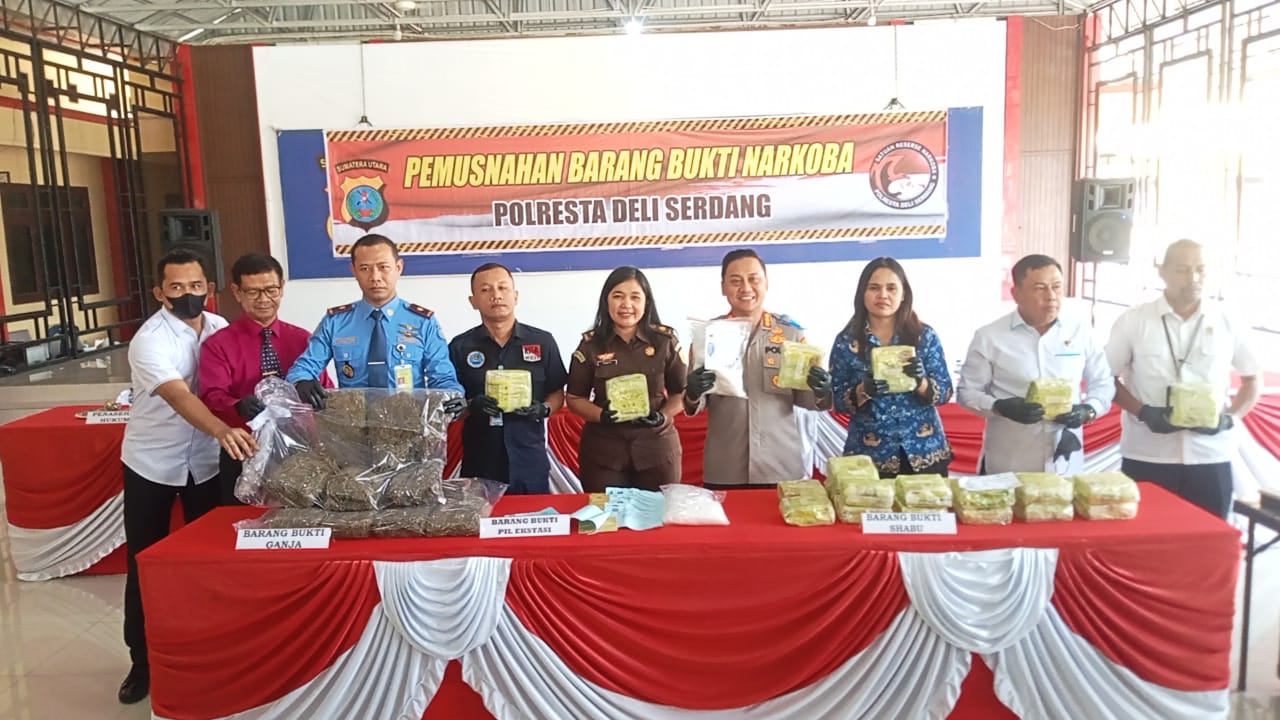 Dipimpin langsung Kapolresta Deli Serdang Kombes Pol Raphael Sandhy Cahya Priambodo, SIK dan dihadiri BNN Propinsi, Pengadilan Negeri Lubuk Pakam, Kejaksaan Negeri Deli Serdang, BNN Kabupaten Deli Serdang, laboratorium forensik (labfor) cabang Sumatera Utara, Dinas Kesehatan Avsec Bandara KNIA serta pejabat utama Polresta Deli Serdang.