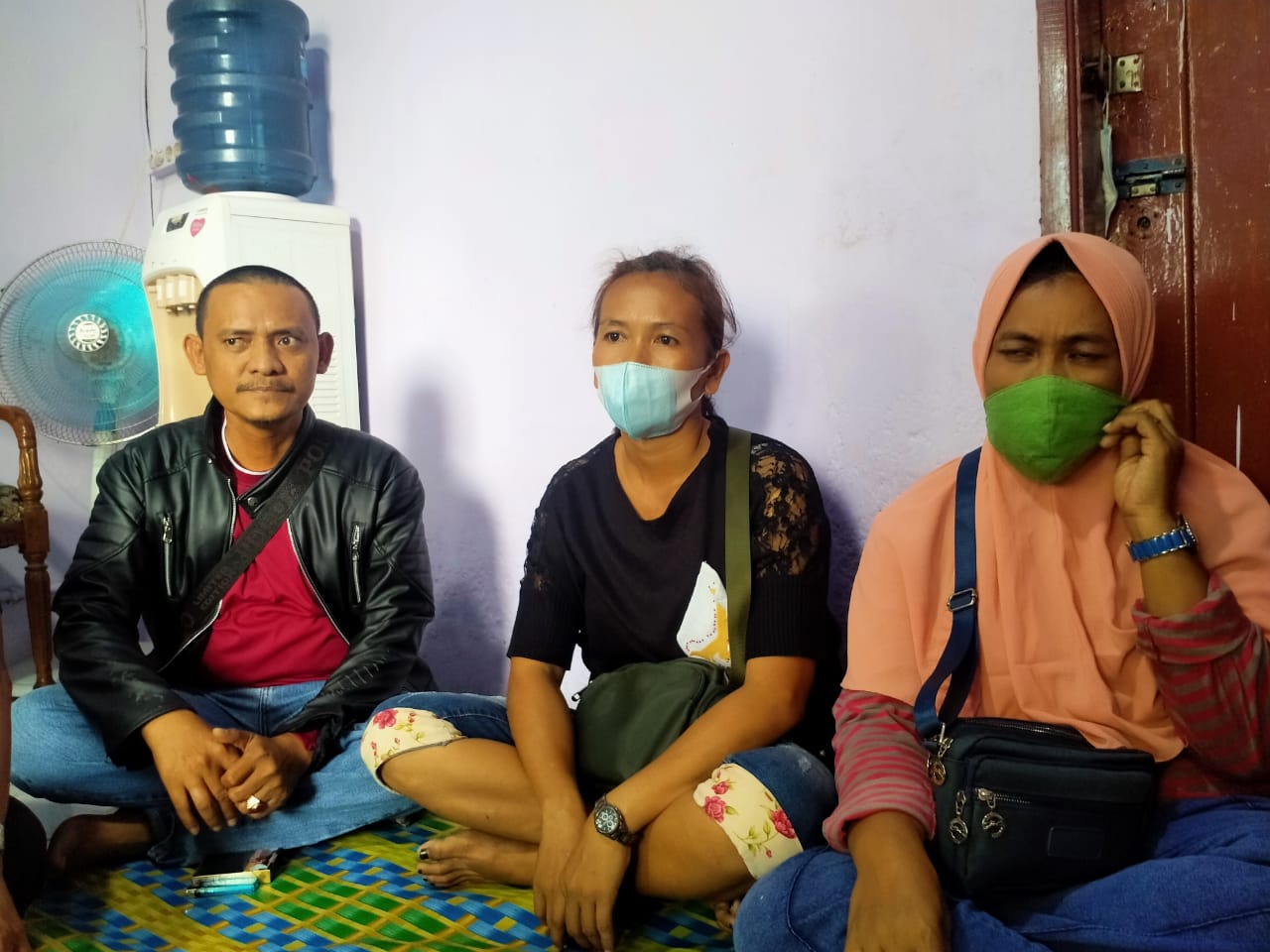 Kedua orangtua korban bullying Maimunah dan Yeti saat memberikan keterangannya kepada wartawan di sekretariat Anak Belawan Bersatu (ABB) di Belawan, Senin (15/3).