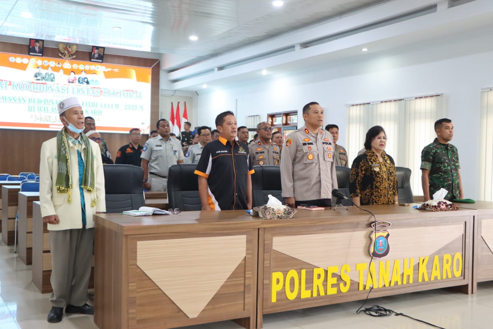 Jajaran Forkopimda Karo mengikuti Rapat Koordinasi (Rakoor) lintas sektoral Ops Ketupat 2023 se Provinsi Sumut bertempat di Aula Pur-Pur Sage Polres Karo, Jumat (14 /4/2023) sekira pukul 09.30 wib.