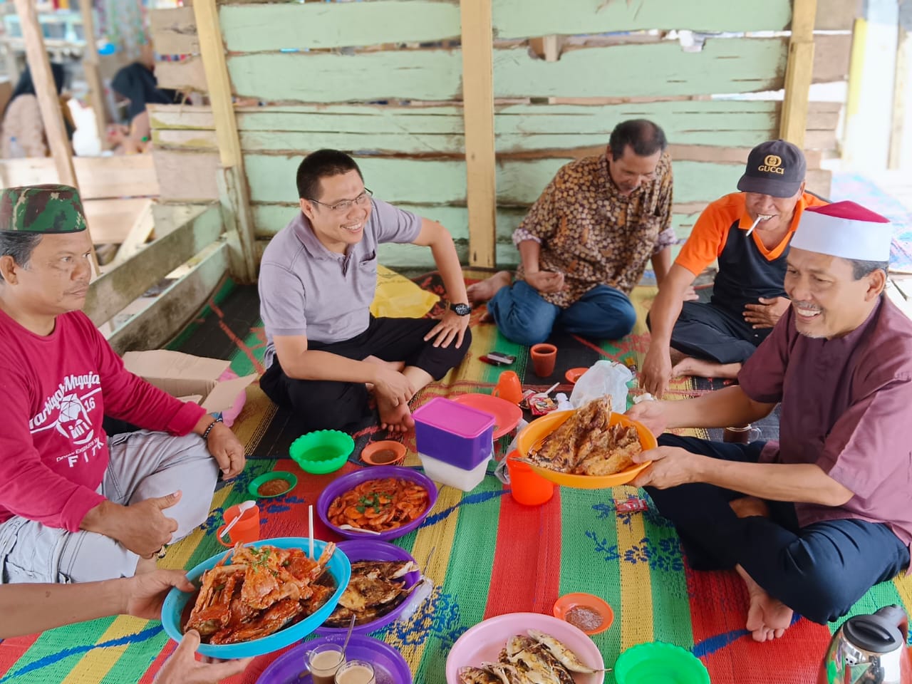 Kami nikmati makan siang di pantai sialangbuah dengan menu hasil laut seperti udang, kepiting, kakap dan kepah, nikmat sekali berlibur di tempat ini. (Foto : H. Suhartoyo).