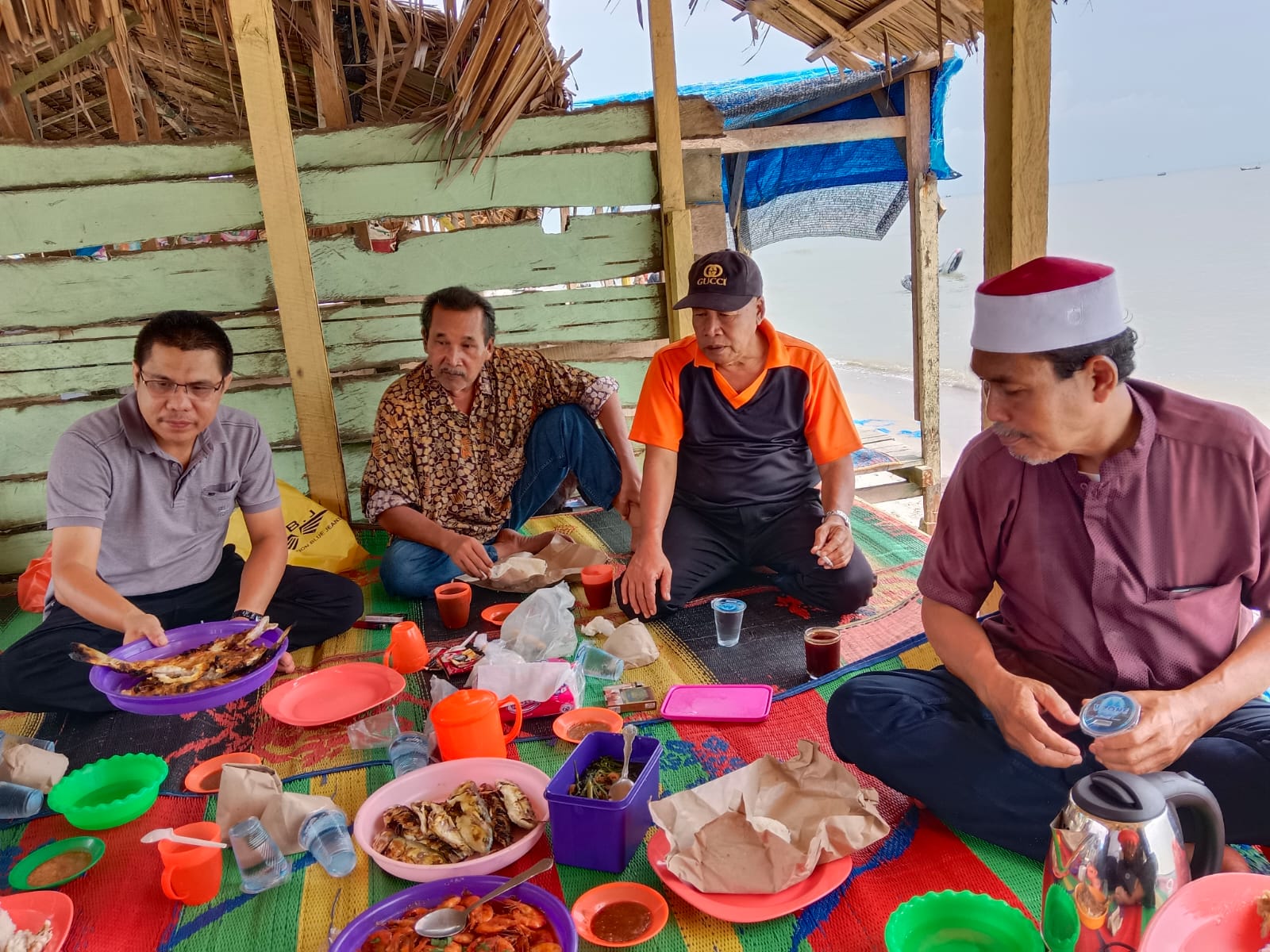 Siang itu, kami menikmati keindahan laut dari gubuk-gubuk dibibir pantai.
