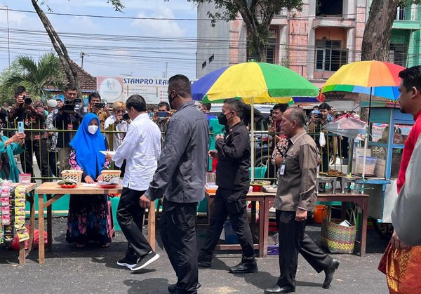Presiden Joko Widodo (Jokowi) mengunjungi Pasar Halat di Medan, Sumatera Utara. Di sana, Jokowi memberikan sejumlah bantuan, seperti uang kepada pedagang.