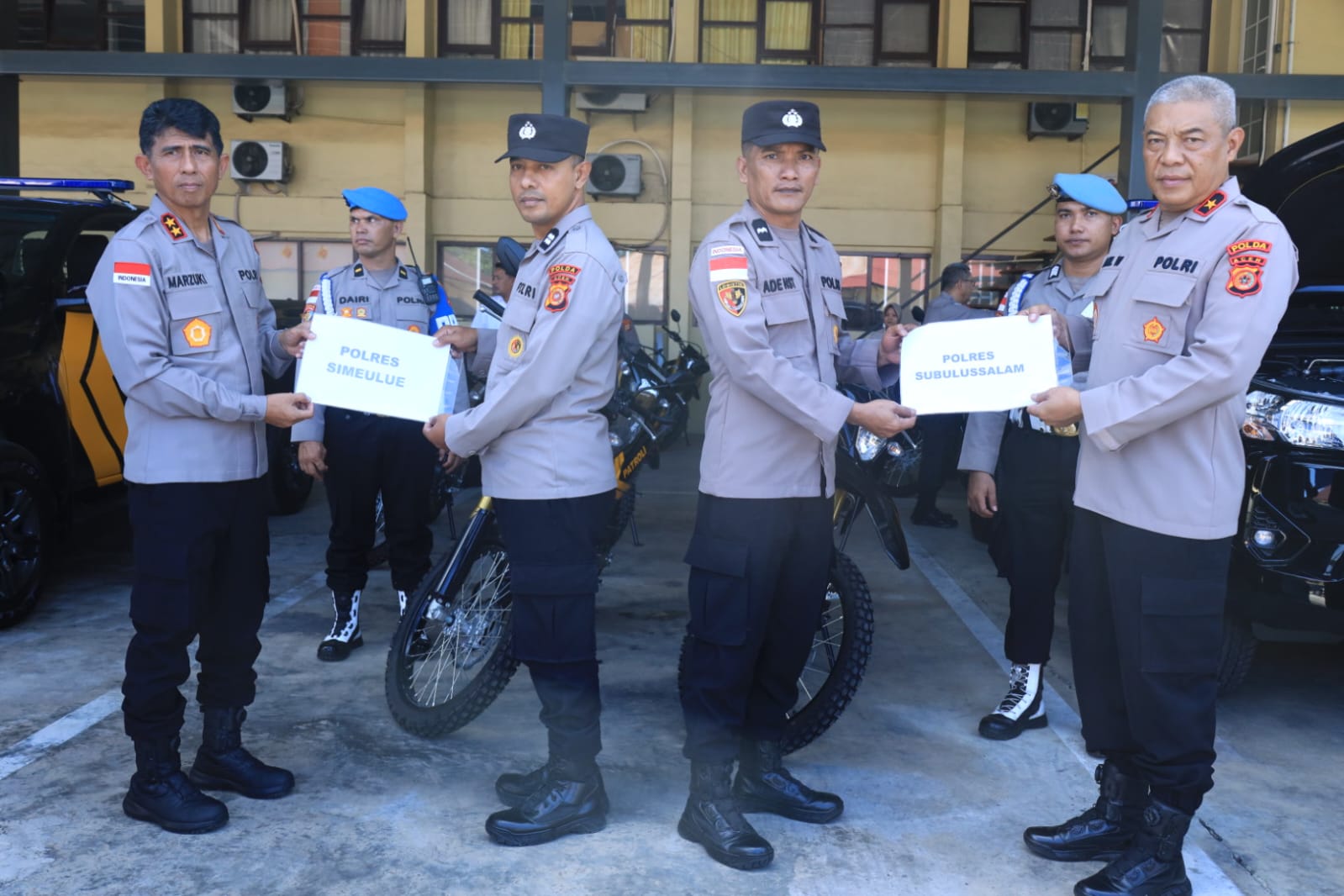 Kapolda Aceh Irjen Pol. Drs. Marzuki Ali Basyah, M.M., menyalurkan secara simbolis bantuan kendaraan dinas berupa mobil dan sepeda motor dari Kapolri kepada Polres Subulussalam dan Polres Simeulue.