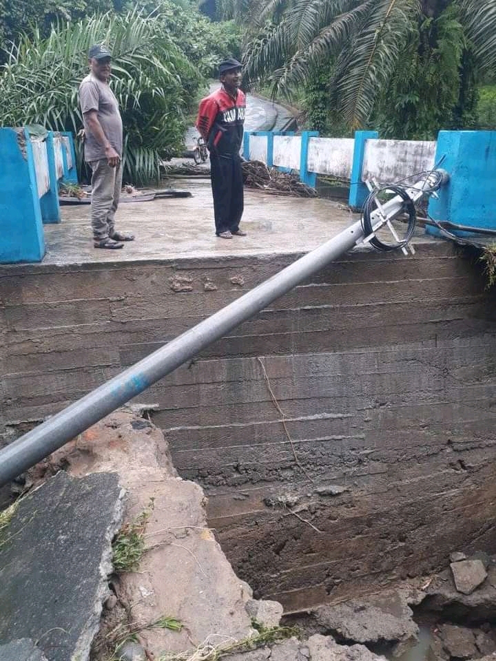 Terpisah, jembatan yang menghubungkan antara Desa Cimahi Kecamatan Bangun Purba dengan Desa Juma Tombak Kecamatan STM Hilir Kabupaten Deli Serdang amblas dan tidak bisa dilalui sama sekali.