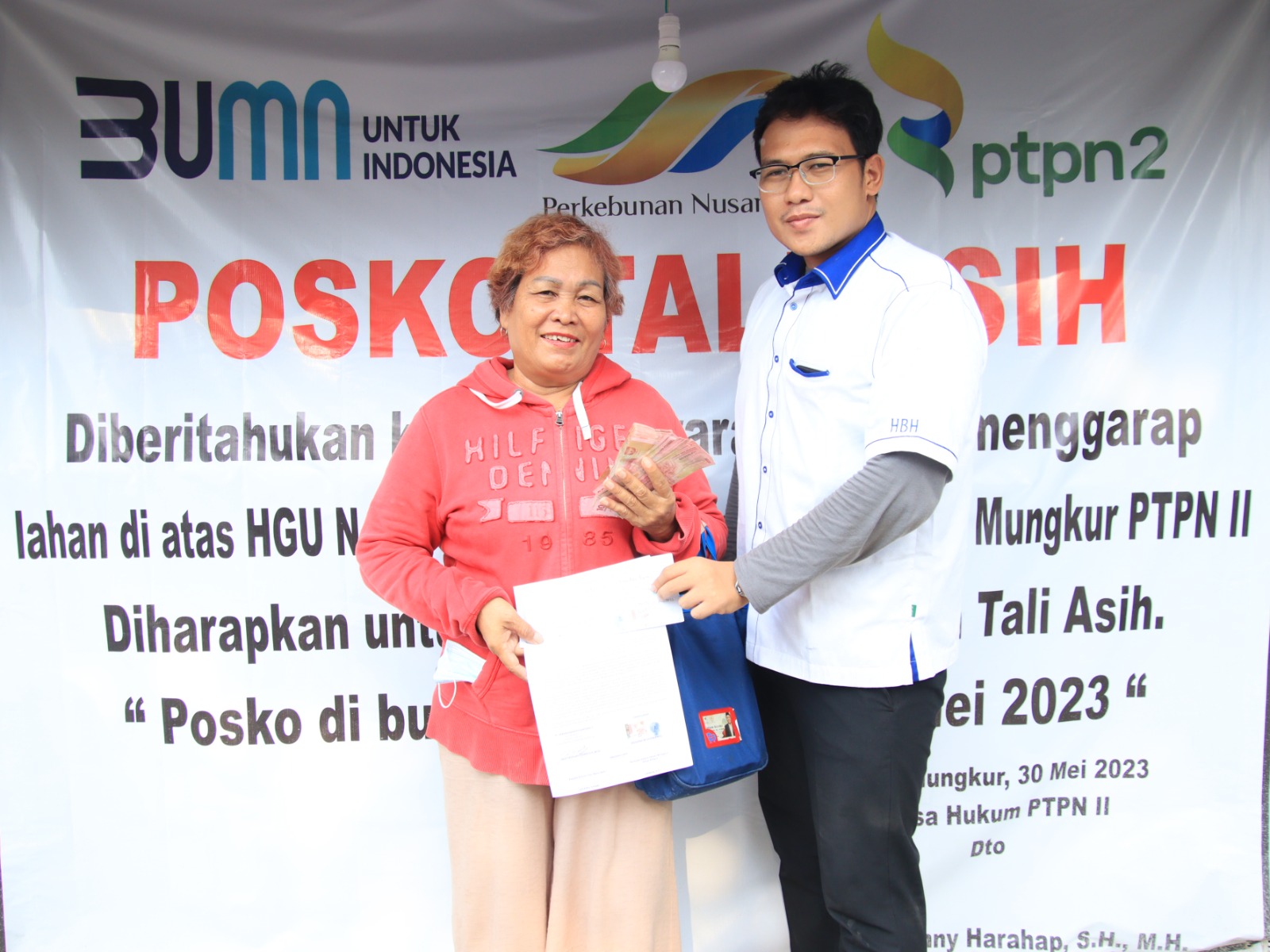 “Jumlah tali asih yang diterima bervariasi, karena luas areal yang digarap tidak sama antara satu dengan warga lainnya,” jelas Julisman salah satu Penasehat Hukum PTPN2 di Posko Tali Asih Kebun Limau Mungkur, Kamis (22/6/23) sore.