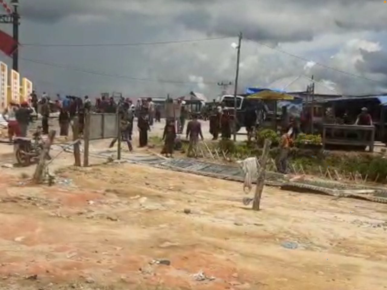 Puluhan orang melakukan pengerusakan pagar seng di Puncak 2000 Desa Kacinambun Kecamatan Tigapanah, Kamis (14/4/2022) dengan menggunakan alat linggis dan lainnya sehingga rubuh.