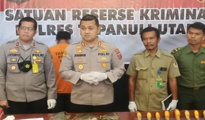 Kepala Kepolisian Resor Tapanuli Utara AKBP Johanson Sianturi mengungkapkan, pihaknya telah mengamankan dua orang pelaku jual beli satwa dilindungi berupa sisik trenggiling dan paruh burung rangkong dari dua lokasi berbeda di Kecamatan Tarutung, Taput.