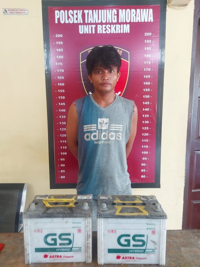 Pelaku pencurian baterai mobil di Pasar 7 Dusun V Desa Wonosari, Kecamatan Tanjung Morawa, Kabupaten Deli Serdang, BAS (27) berhasil diciduk tekab Polsek Tanjung Morawa, Senin (7/6/21).