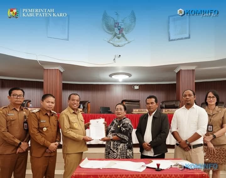 Seusai penandatanganan berita acara oleh Bupati Karo Antonius Ginting dan Ketua DPRD Karo Iriani Tarigan.(Foto/Ist)