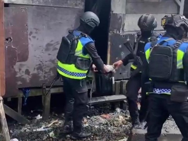 Tangkapan layar video viral momen polisi mengamankan solar dari rumah warga di Medan Belawan.