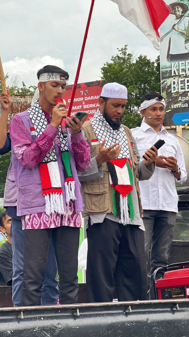 Ketua bidang dakwah PW. Persis Aceh Ustadz Dr. Muhammad Yusran Hadi, Lc., MA turut memberikan orasi bela Palestina. Ia menyampaikan kekejaman Israel dengan melancarkan serangan udara terhadap kota Gaza Palestina tanpa hentinya setiap harinya sejak Sabtu 7 Oktober 2023 sampai hari ini. Israel membombardir kota Gaza dengan ribuan rudal dalam serangan udara ini dengan brutal dan membabi buta.. Serangan udara ini menghancurkan kota Gaza dan membantai warga Gaza yang mayoritas muslim, termasuk anak-anak, wanita, lansia, wartawan, dan para medis. Bahkan Israel menggunakan bom fosfor yang dilarang dalam hukum internasional.