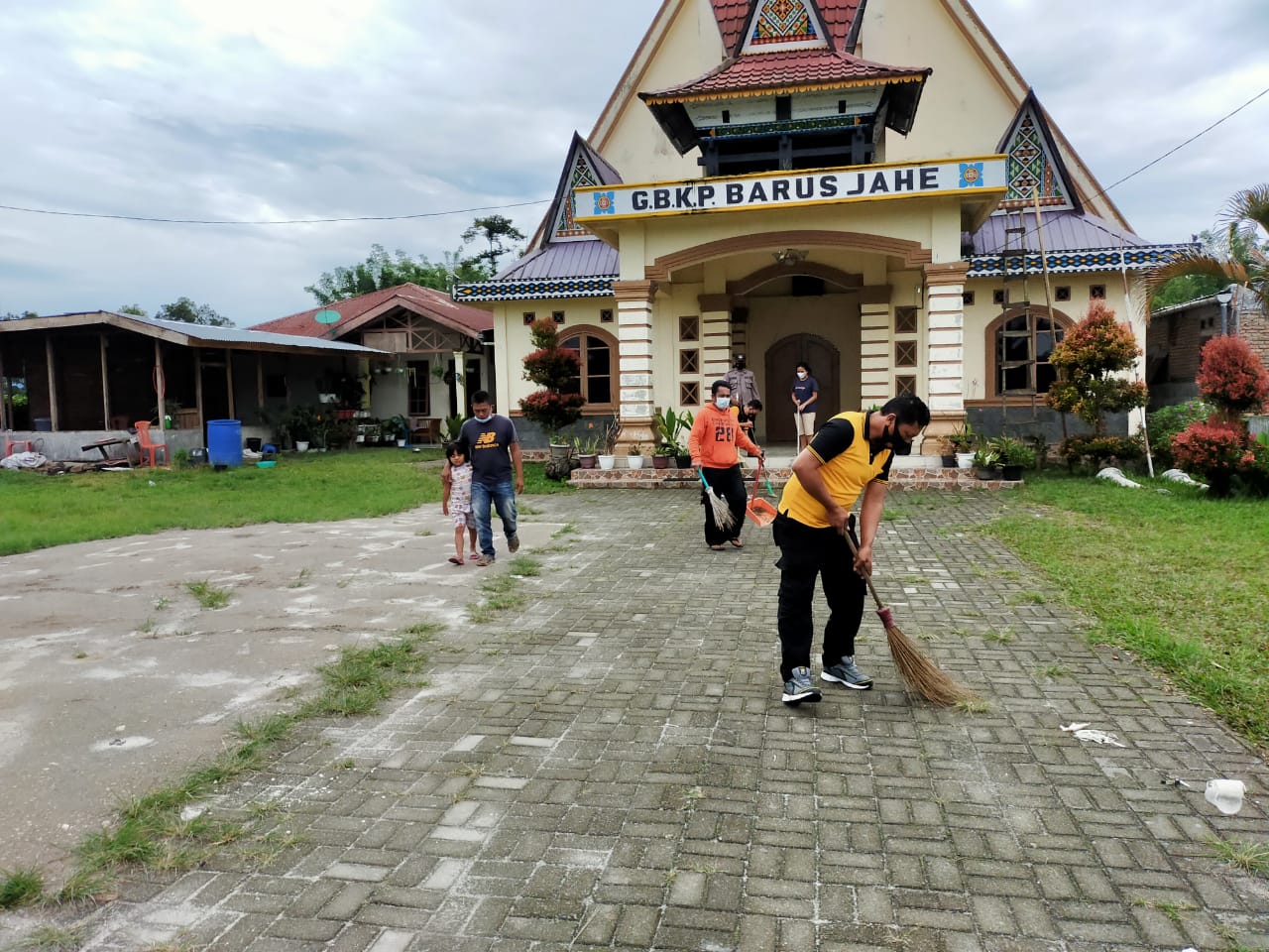Tampak di kegiatan tersebut personil Polres Karo secara bersama melaksanakan bakti sosial dan mereka tidak membedakan lokasi yang harus dibersihkan.