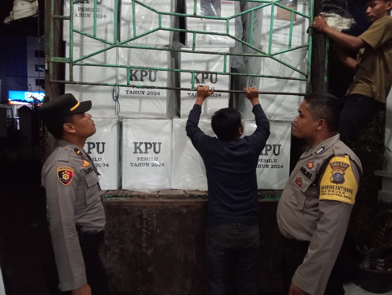 Namun pengamanan dan pengawalan logistik surat suara Pemilu Tahun 2024 dari Kantor PPK Kecamatan Simpang Empat ke Gudang Logistik KPUD Karo terus dikawal.