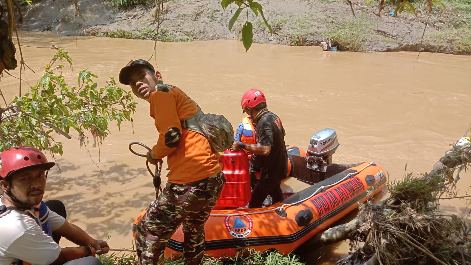 Tim SAR Sisir Lokasi Warga Hanyut di Sungai Belumai Tanjung Morawa