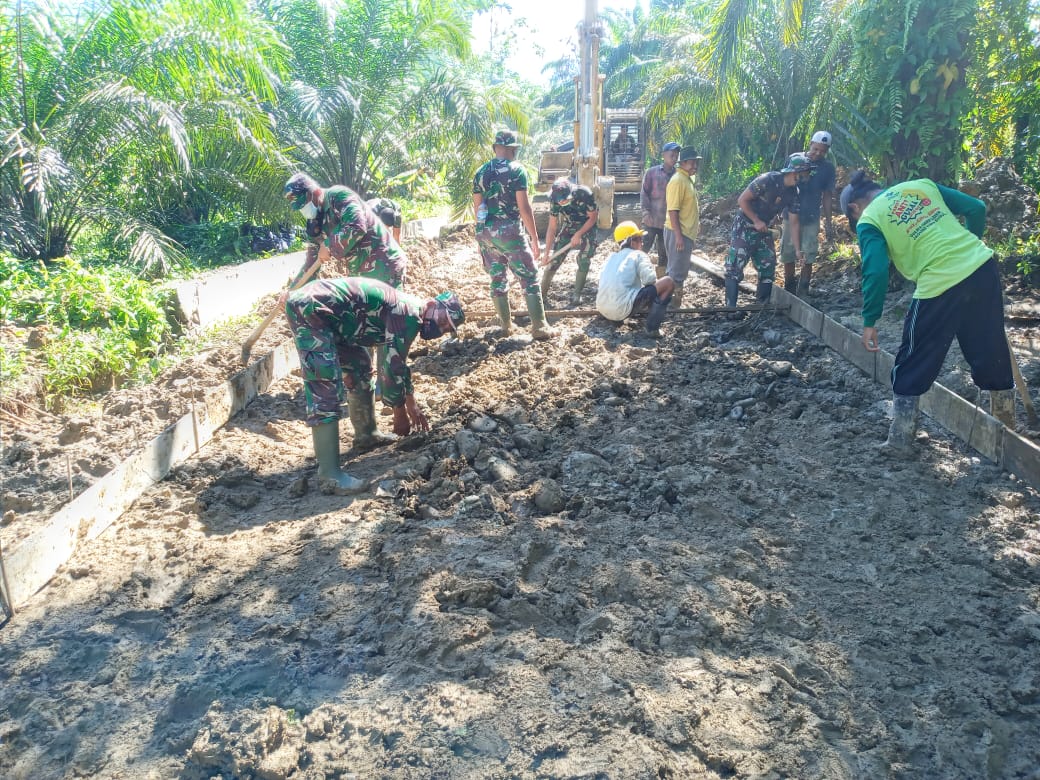 Seperti yang terlihat, Jumat (2/7/2021) saat pengerjaan jalan dengan konstruksi rigid beton. Warga begitu antusias membantu