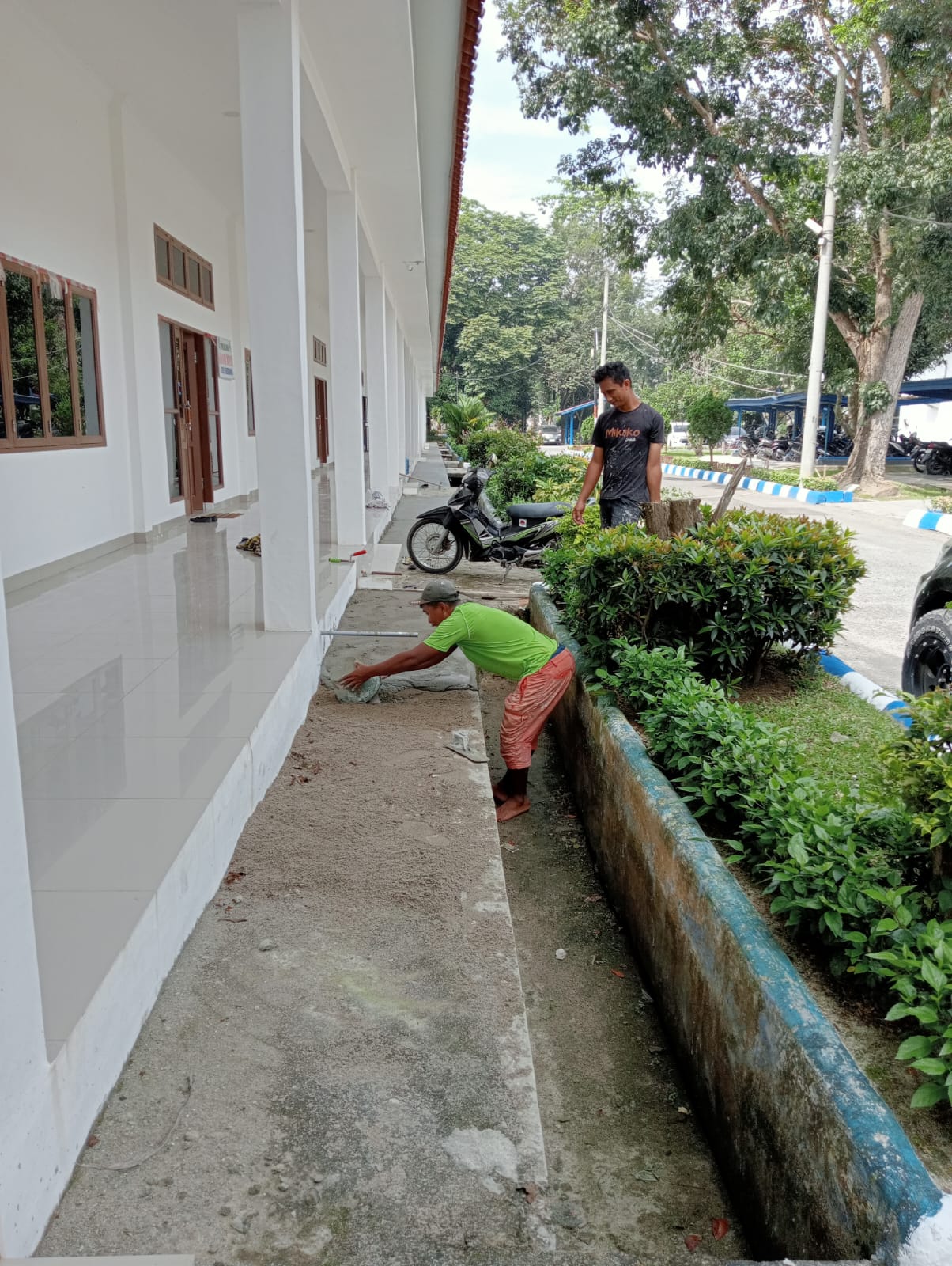 Lantai semen gedung belakang komplek kantor Bupati Deli Serdang yang dipecahkan 5 orang gabungan dari Aparatur Sipil Negara (ASN) dan honorer pada akhir November 2023 lalu telah diperbaiki dan disemen kembali oleh 2 pekerja bangunan. Direncanakan, pekerjaan perbaikan tersebut akan selesai, Selasa (12/12/23).