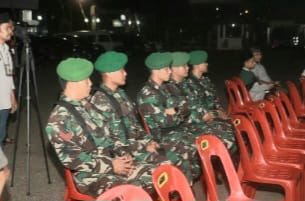Personil Kodim 0213/Nias ikut membantuan pengamanan pawai akbar Idul Fithri di Kota Gunungsitoli, Rabu malam (10/4/2024).
